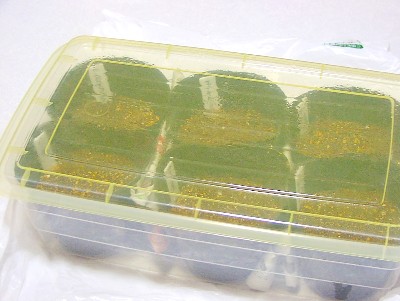今回は、「オコタ発芽」でやってみます。「オコタ発芽」は、毎年、花のマリーゴールドの発芽をさせる時に使ってる方法です。まだ寒い2月の北陸。自分の部屋にある暖房といえばコタツしか無いので、こうしてケースに入れてスイッチを切ったコタツの余熱で暖めて発芽させます。